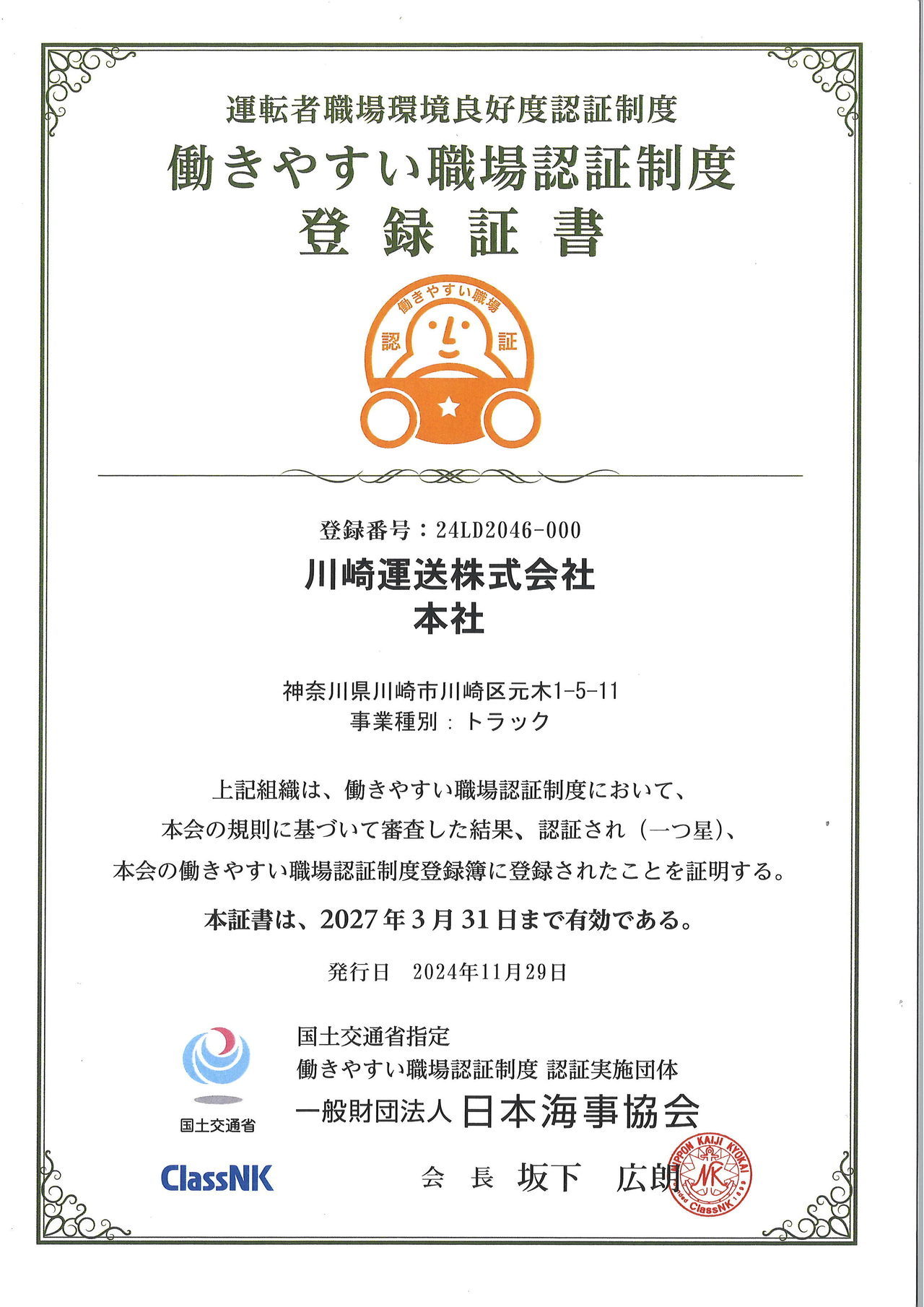 | 梶ヶ谷営業所 | 24LD2046-006 | 2027年3月31日 |