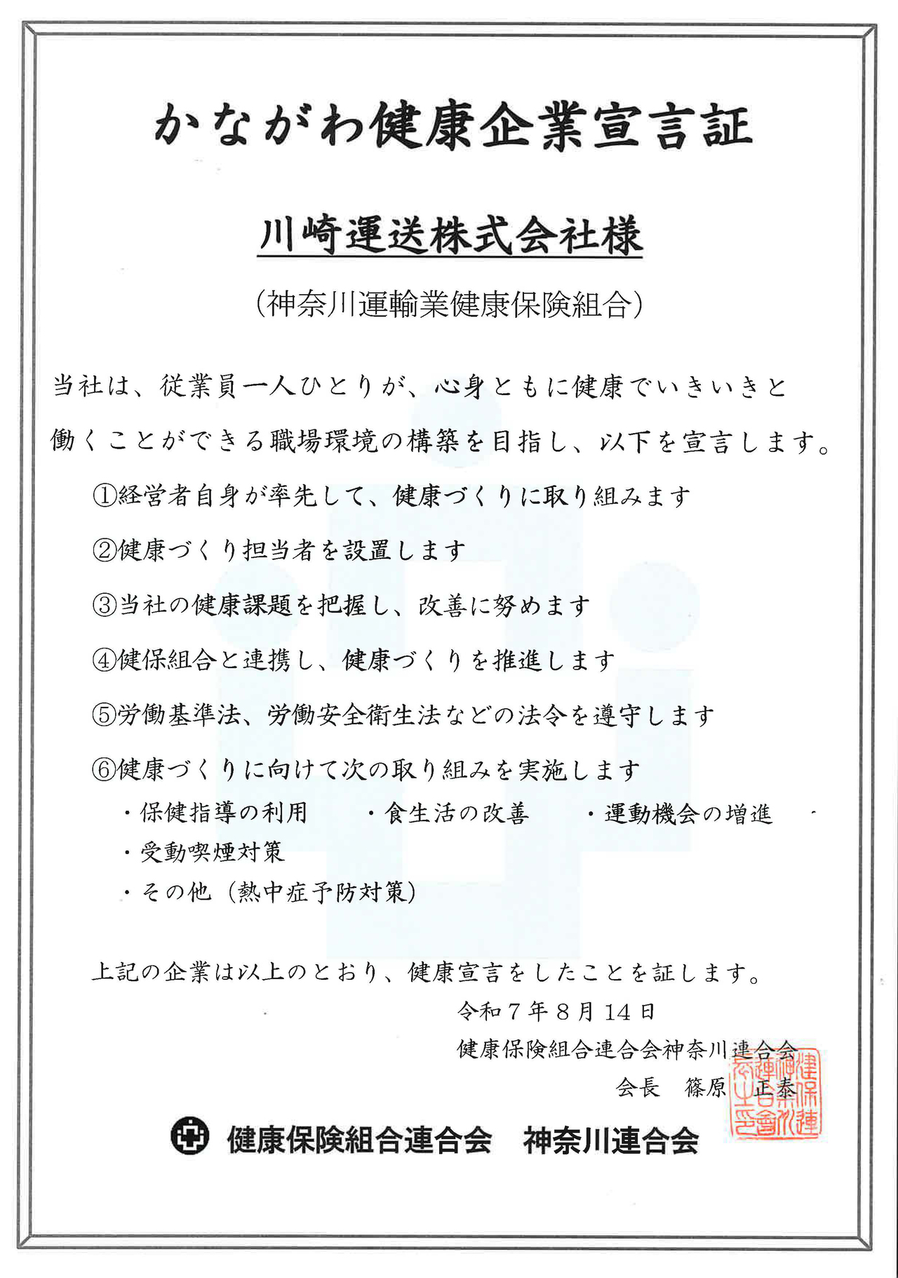 ・「かながわ健康企業宣言」への参加 (令和7年8月 健康保険組合連合会神奈川連合会)